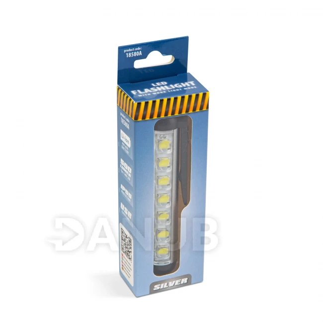 LED baterka - režim pracovnej lampy - 400 mAh akumulátor - XPE + SMD LED - 500 lm - IP55 - strieborn