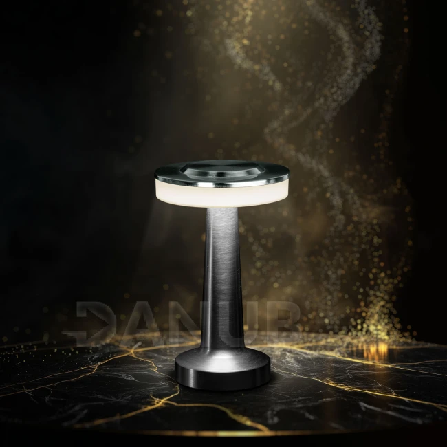 Stolová lampa - strieborná farba - nastaviteľná farebná teplota, jas - akumulátorová - USB