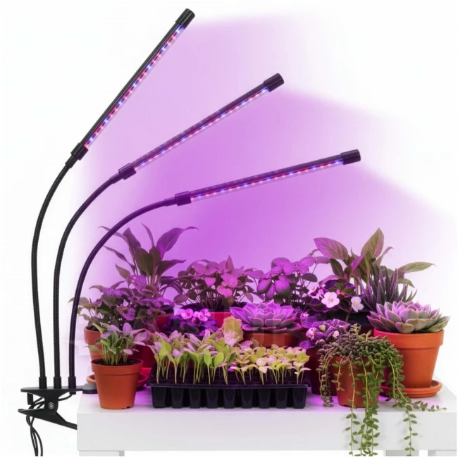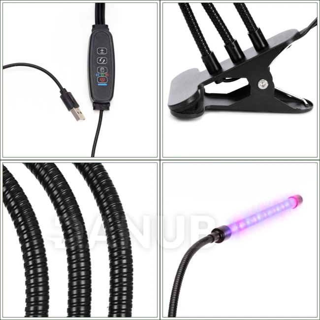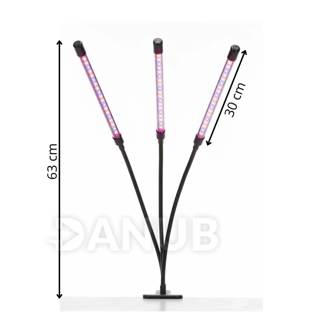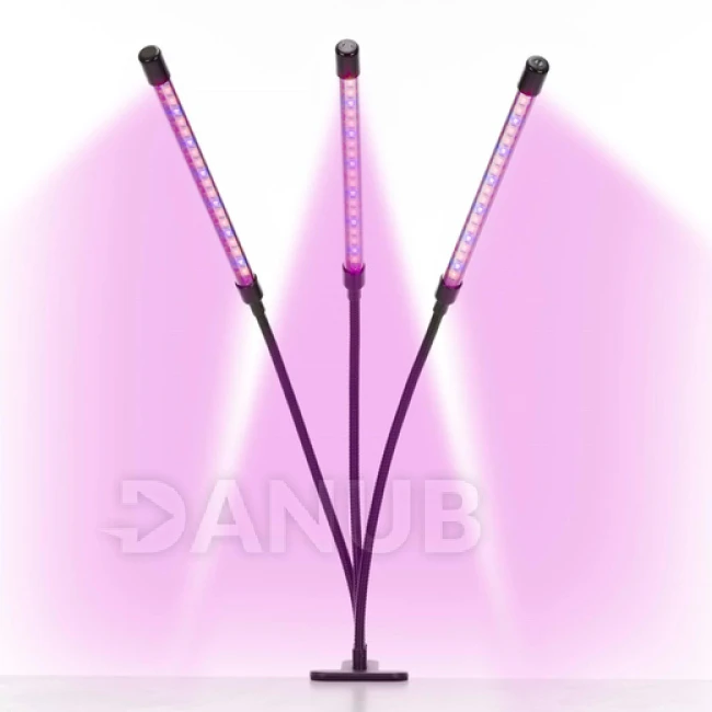 LED lampa na rast rastlín - 3 panely - časovač a spona - USB