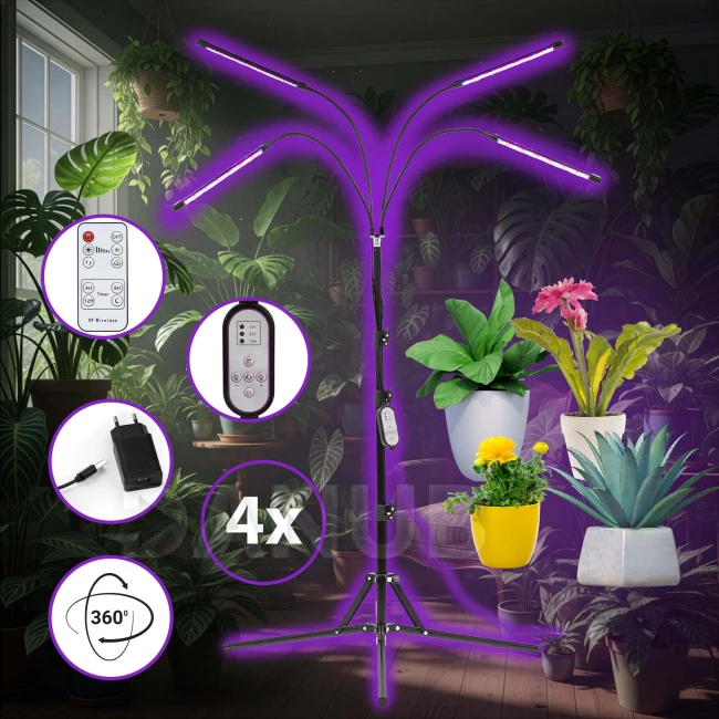 LED lampa na rast rastlín, 4 panely - časovač a diaľkové ovládanie - USB