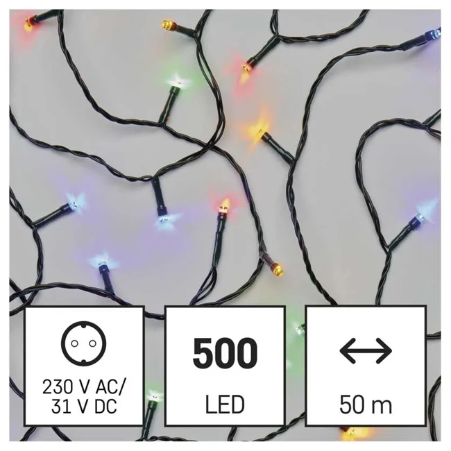 LED vianočná reťaz, 50 m, vonkajšia aj vnútorná, multicolor, programy, časovač