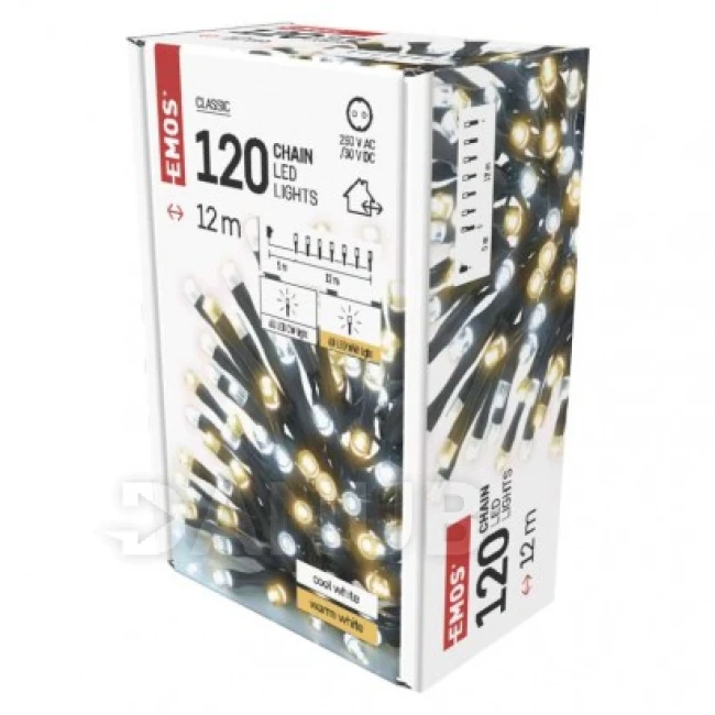LED vianočná reťaz, 12 m, vonkajšia aj vnútorná, teplá/studená biela, časovač