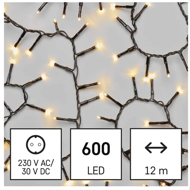 LED vianočná reťaz – ježko, 12 m, vonkajšia aj vnútorná, teplá biela, časovač