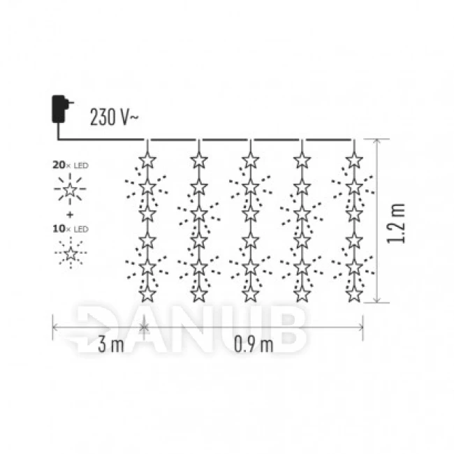 Led vianočný záves – hviezdy, 120×90cm, vnút., teplá b., č.