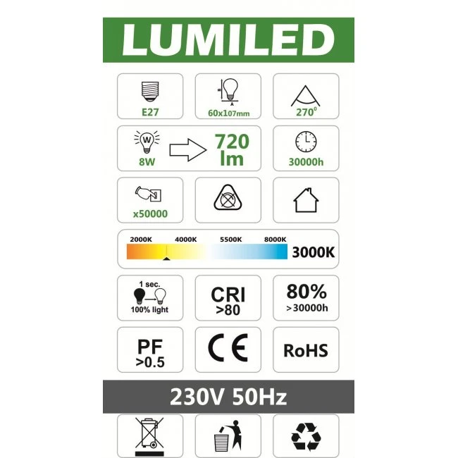 - rovnomerná intenzita vyžarovaného svetla LED žiarovky počas jej životnosti