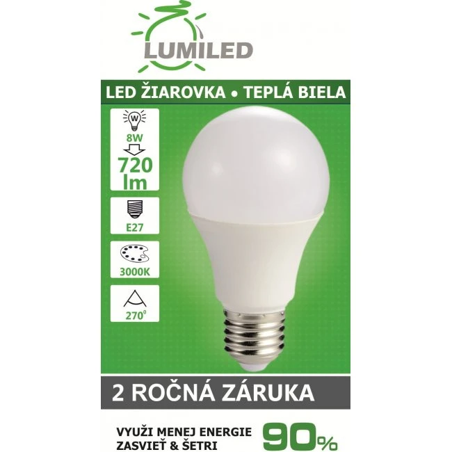 Led žiarovka e27 8w smd2835 teplá biela