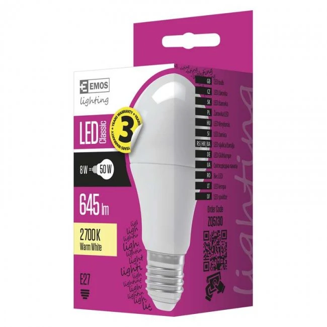 Parametre produktu LED žiarovka Classic A60 8W E27 teplá biela
