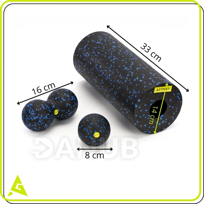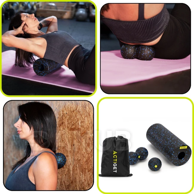 Masážny penový valec/roller + masážna sada - čierno-modrá