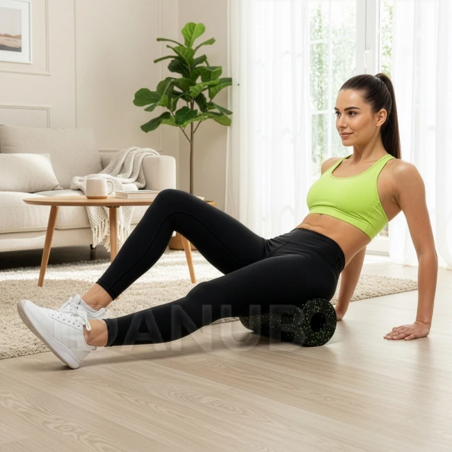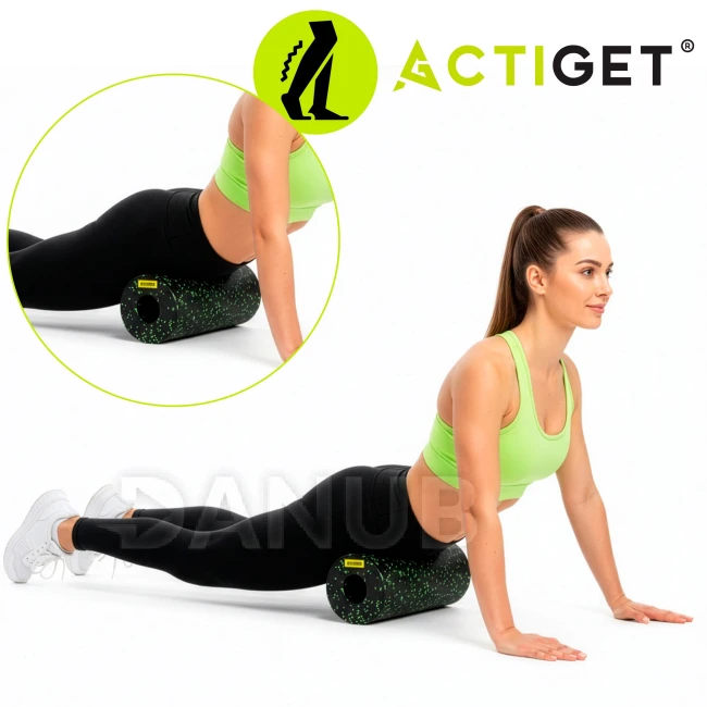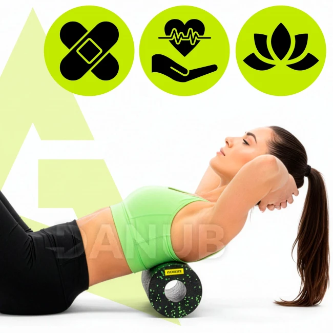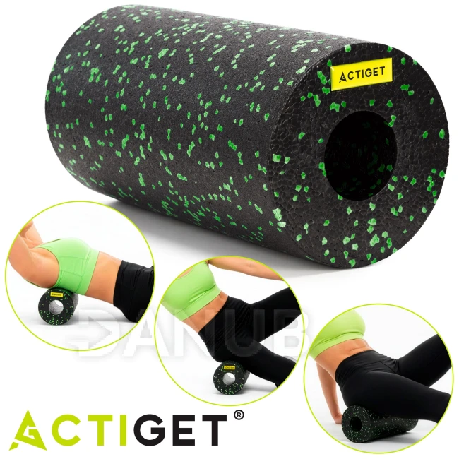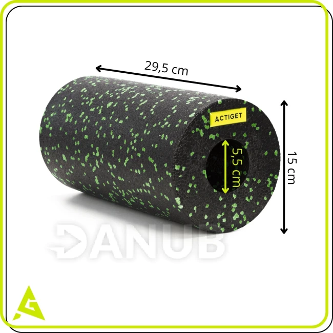 Masážny valec/roller - stredne tvrdý penový valec - čierno-zelený