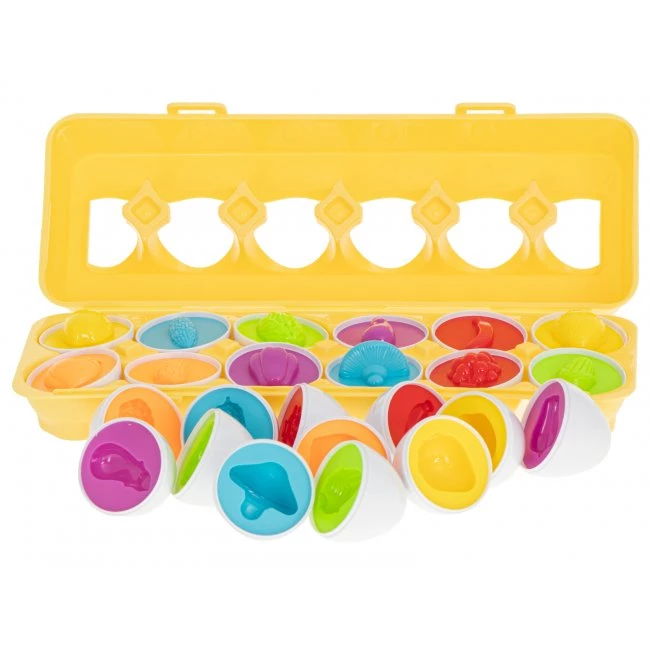 Vzdelávacia hra obsahuje 12 vajíčok, ktoré pod škrupinou skrývajú rôzne čísla a farby. Úlohou dieťaťa je nájsť rovnaké číslo a spojiť vajíčka podľa farby.