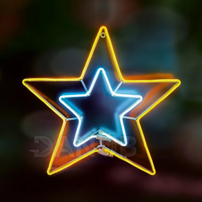 Neon-light dvojitá snehová vločka vonkajšia - 55x54cm - modrá/žltá