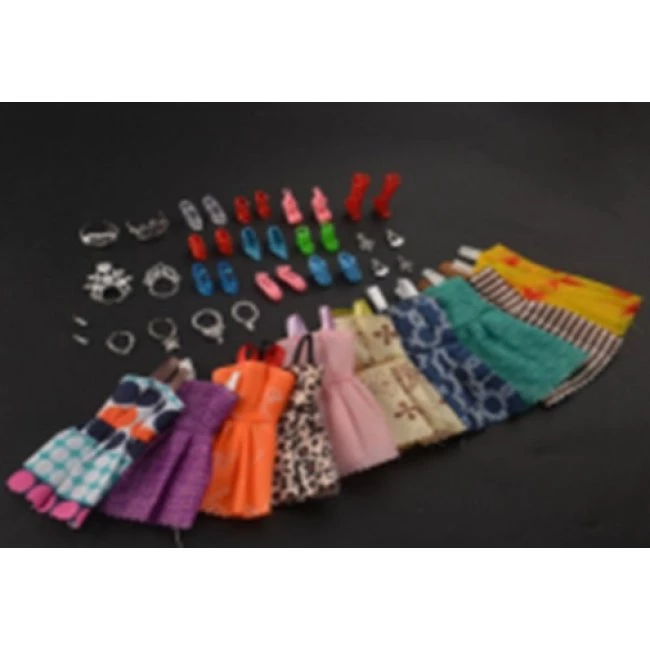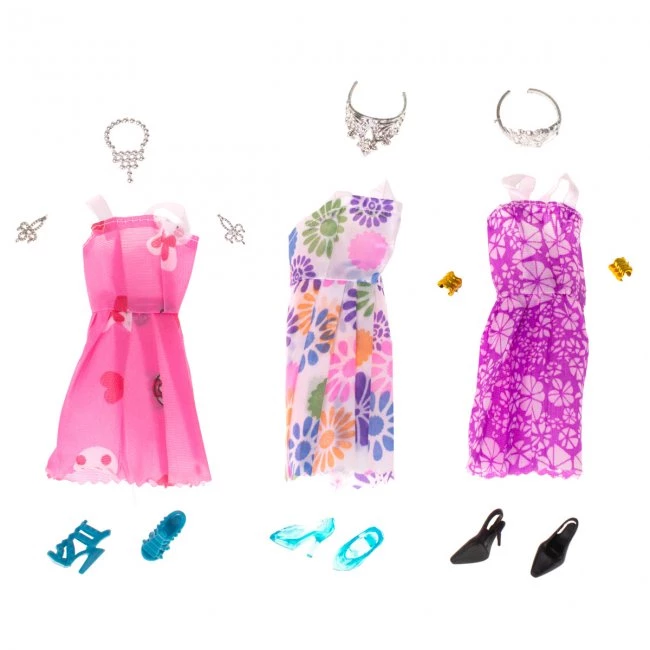 Krásna sada oblečenia pre bábiky, s veľkým množstvom doplnkov.