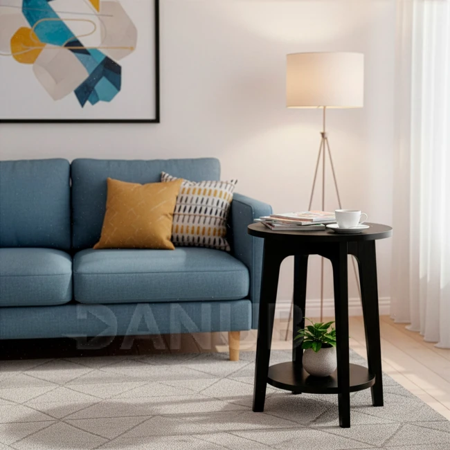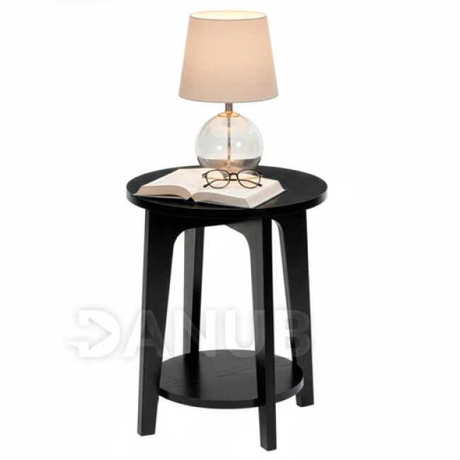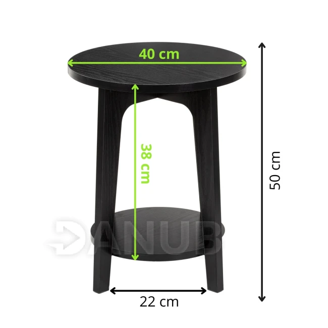 Okrúhly konferenčný stolík drevený - Ø 40 cm - s prídavnou policou - čierny