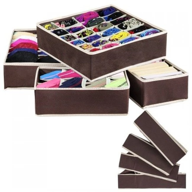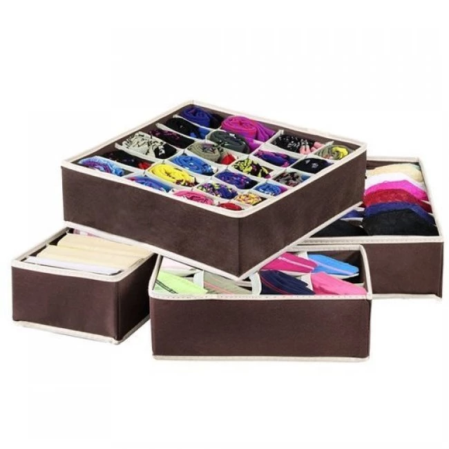 Organizér na spodnú bielizeň - sada 4 ks - hnedý