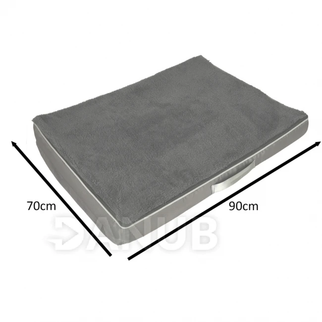Ortopedický pelech pre psa ponúka vysoký komfort pre každého domáceho maznáčika. Vďaka špeciálnej výplni sa počas spánku odľahčia svaly a kĺby psa, čo umožňuje úplnú relaxáciu. Obdĺžnikový tvar a veľké rozmery (90x70 cm) umožňujú psovi ležať v najpohodlnejšej polohe. Odnímateľná, tmavošedá obliečka na vankúš uľahčuje udržiavanie postele v čistote.