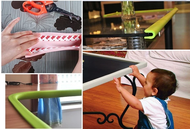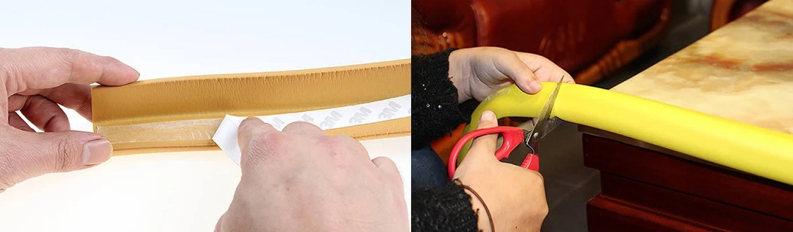 Penová lepiaca páska v tvare L, ideálna na zabezpečenie okrajov nábytku – napr. keď sa dieťa učí chodiť.