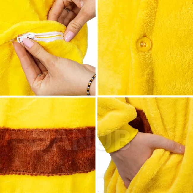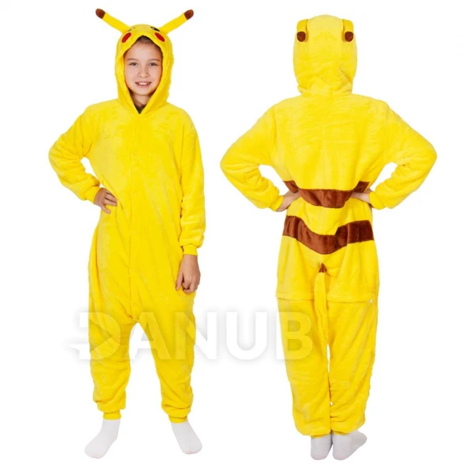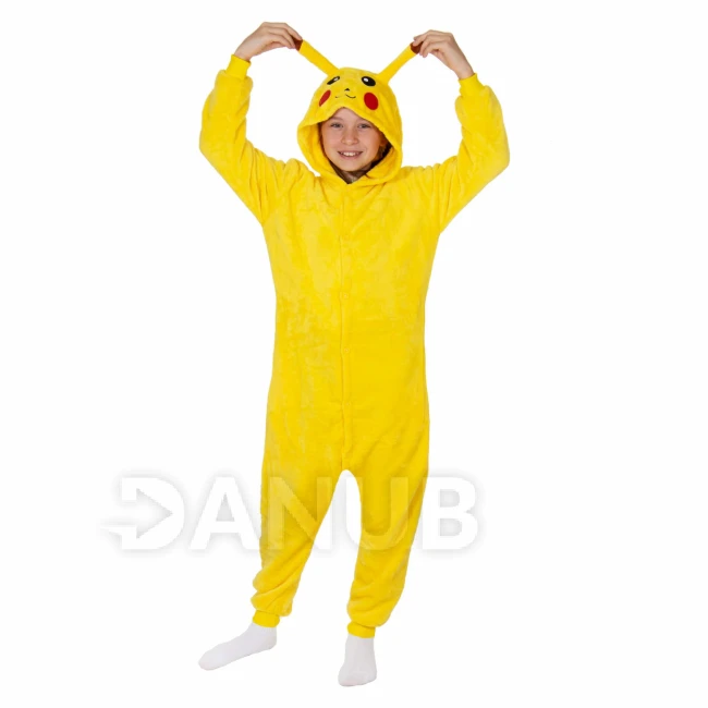 Plyšový overal Kigurumi - vzor pikachu - 120 -130 cm