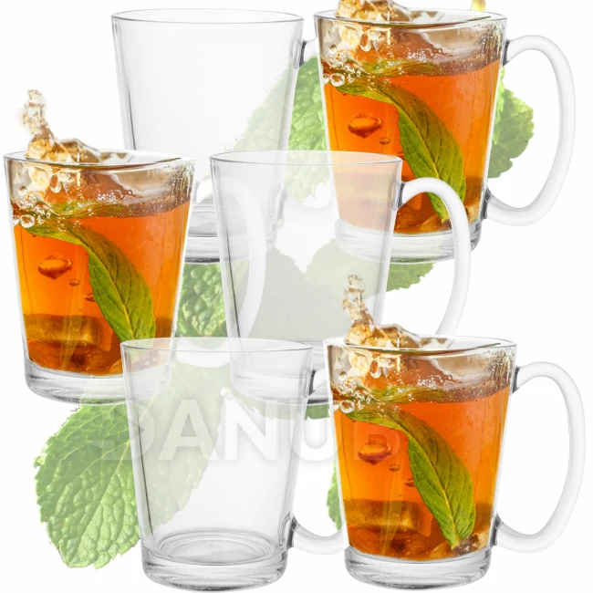 Poháre na kávu a čaj - 6 ks 300 ml - s uškom - súprava na latte