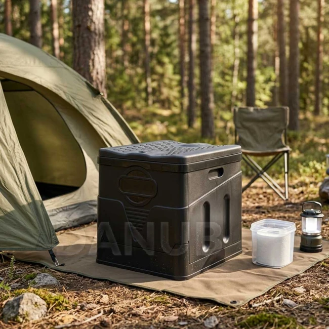 Kompaktná prenosná toaleta s objemom 20l, ideálna na kempovanie, výlety a outdoor aktivity.