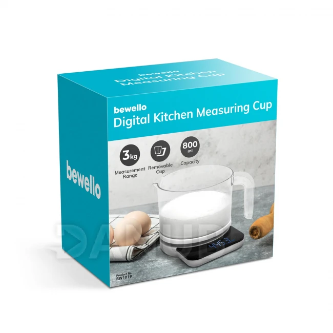 Vynikajúce koláče sa dajú pripraviť len vtedy, ak budete presne postupovať podľa receptu! Pomôže vám v tom táto kuchynská odmerka a váha vhodná na odmeranie tekutín a pevných prísad. Stupnica džbánu vám umožní jednoducho odčítať množstvo tekutiny v ňom, zatiaľ čo digitálna váha vám umožní presne odmerať tuhé ingrediencie (ako je múka, droždie, cukor) na desatinnú čiarku.