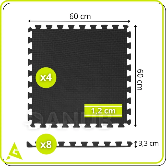 Protišmyková puzzle podložka - 60x60x1,2 cm - 4 ks - EVA pena - grafitovo sivá