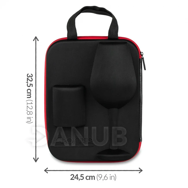 Materiál: EVA. Puzdro je vyrobené z tvrdého a pevného materiálu, ktorý chráni jeho obsah pred rozbitím. Vďaka ľahkej a kompaktnej konštrukcii ho možno ľahko zbaliť do tašky, batohu alebo kufra. Rozmery: 32,5 cm (výška), 24,5 cm (šírka).