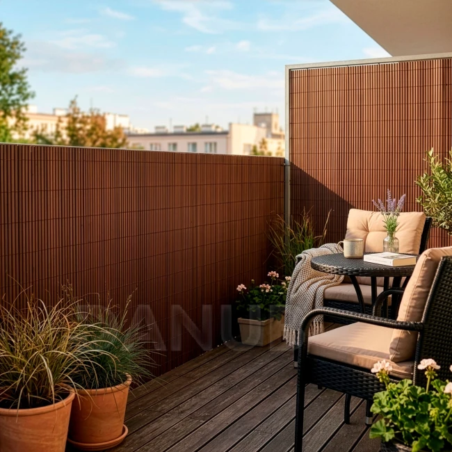 PVC krycia clona na balkón, terasu a oplotenie - 100 x 400 cm - hnedá