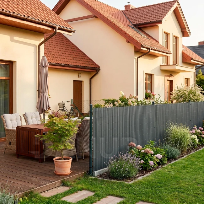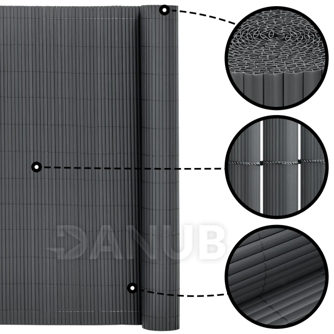 PVC krycia clona na balkón, terasu a oplotenie - 180 x 500 cm - tmavosivá