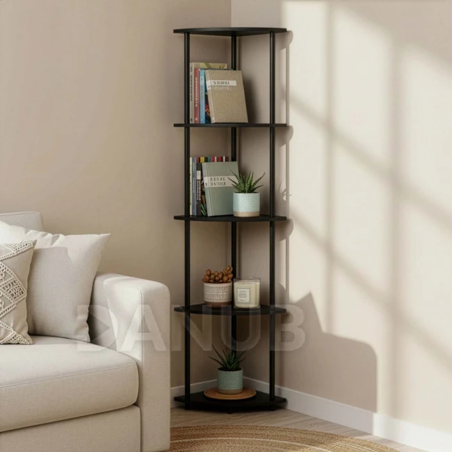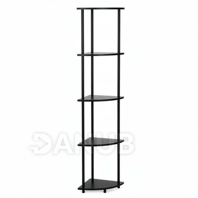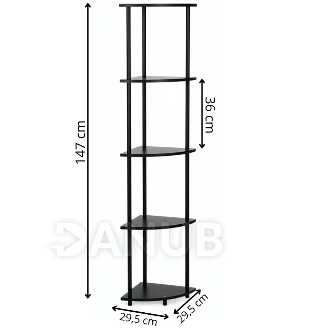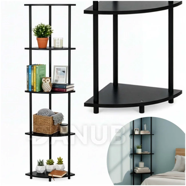 Rohový policový regál s 5 policami do obývačky - 147 cm - čierna