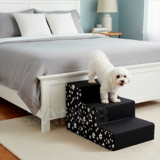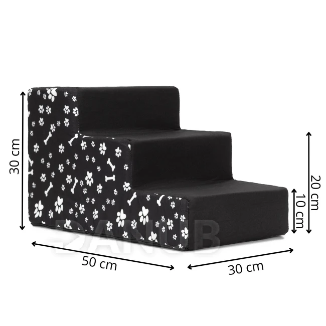 Schodíky pre psov - 50x30x30 - 3 schody - tmavosivá so vzorom
