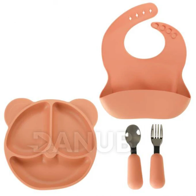 Silikónový detský riad - medvedík - oranžový - 4ks