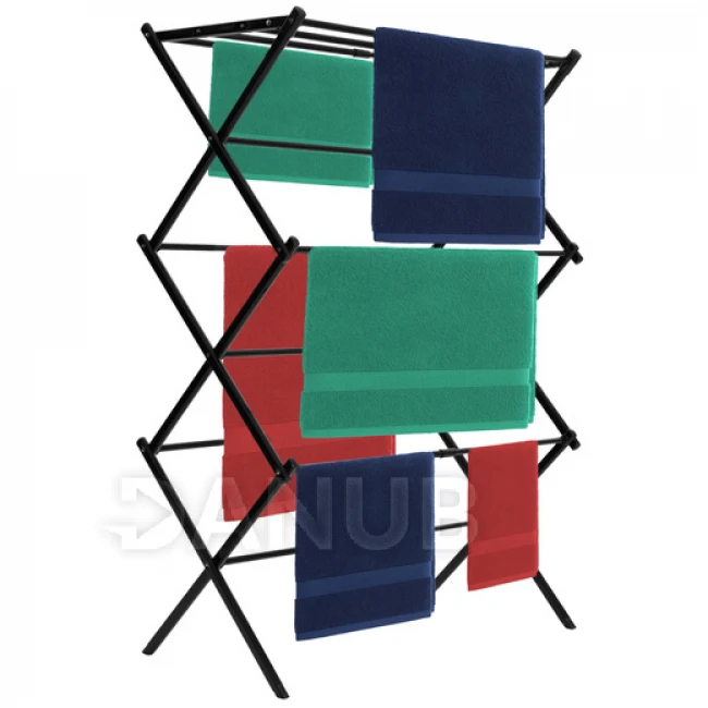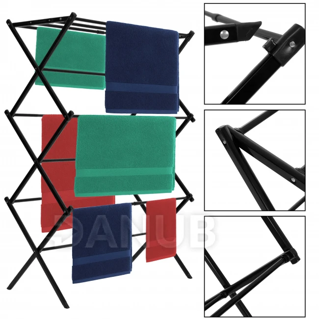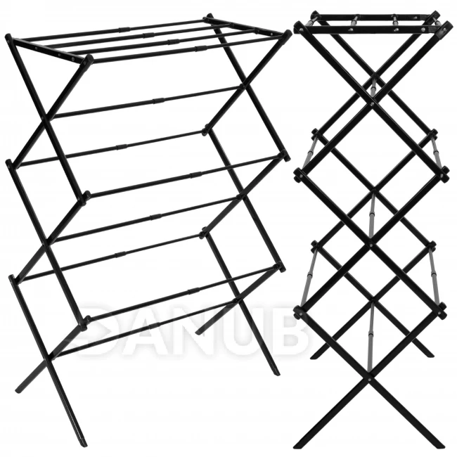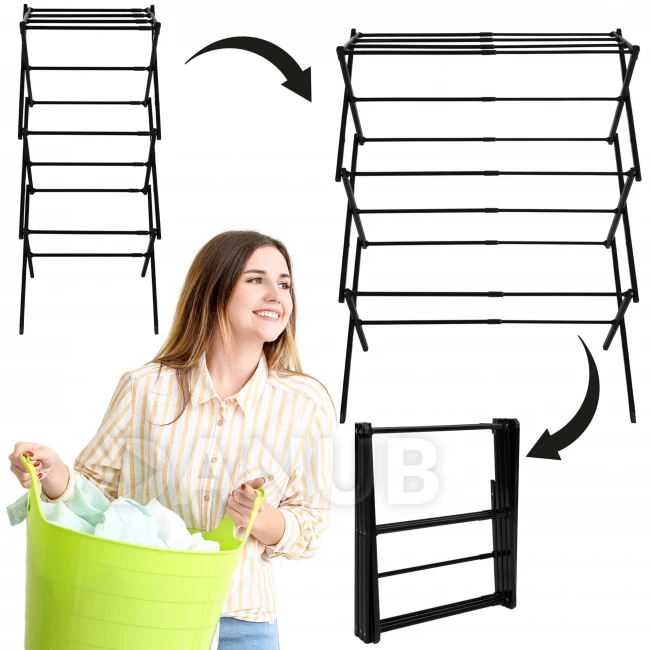 Skladací sušiak bielizne s nastaviteľnou dĺžkou, teleskopický, čierny