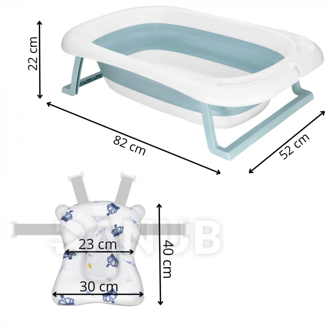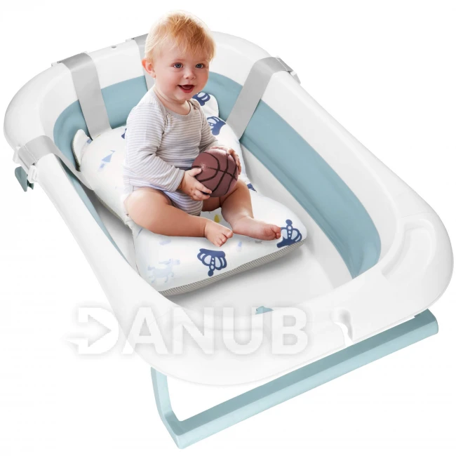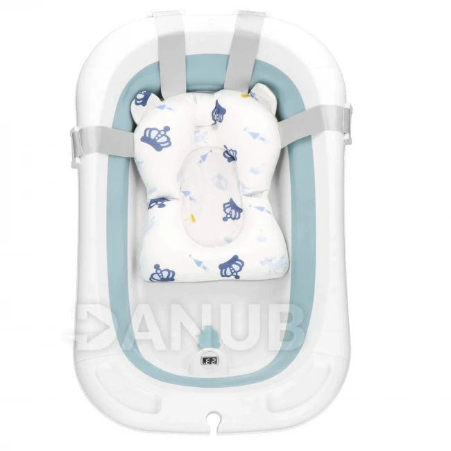 Skladacia detská vanička pre bábätká - 35L - s teplomerom a podložkou - bielo-modrá