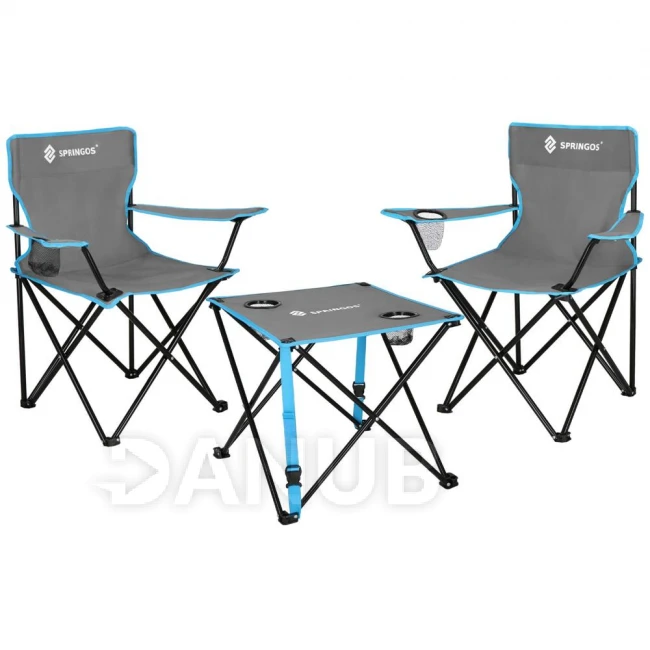 Skladacia kempingová súprava: stôl a 2 stoličky s operadlom