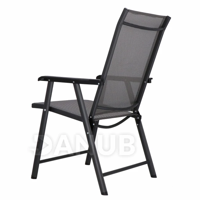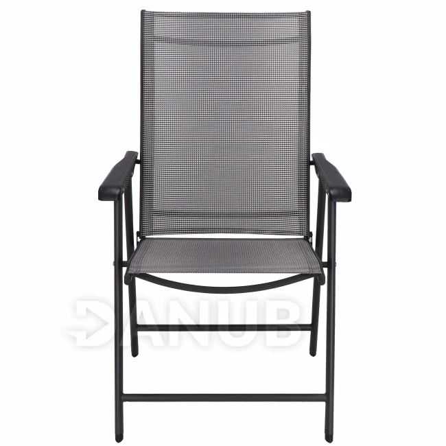 - Materiál: kov (konštrukcia); 100% textilný; plast (opierky na ruky)