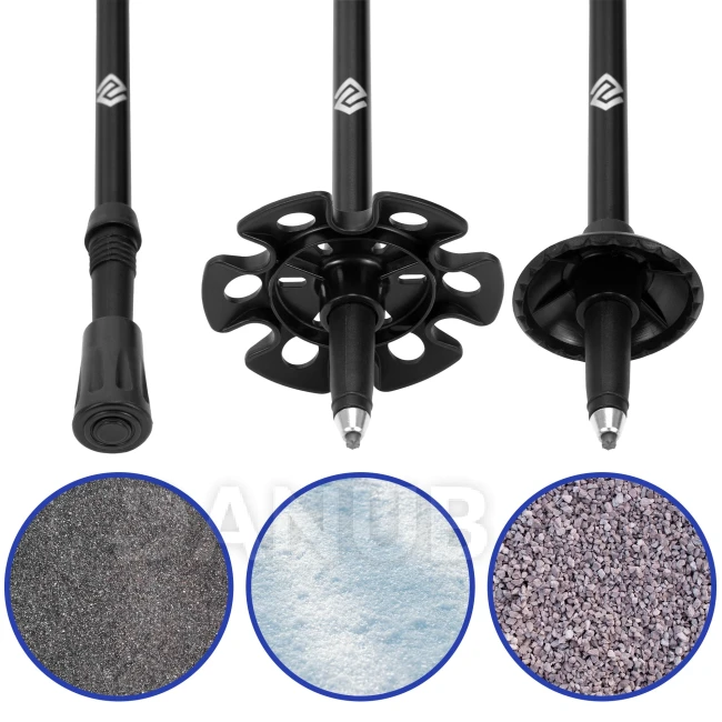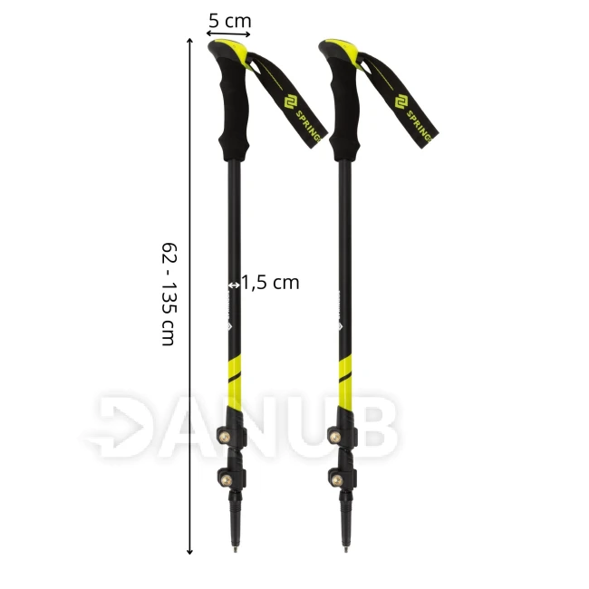 - Trekingové palice sú vybavené plastovými prackami, ktoré po upevnení držia prvky pohromade a zabraňujú ich pohybu.