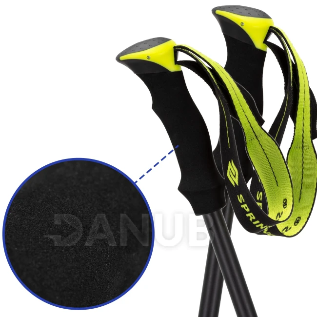 - *Popruh na zápästie je nastaviteľný na dĺžku a má poistku, ktorá zabraňuje jeho samovoľnému uvoľneniu počas chôdze.