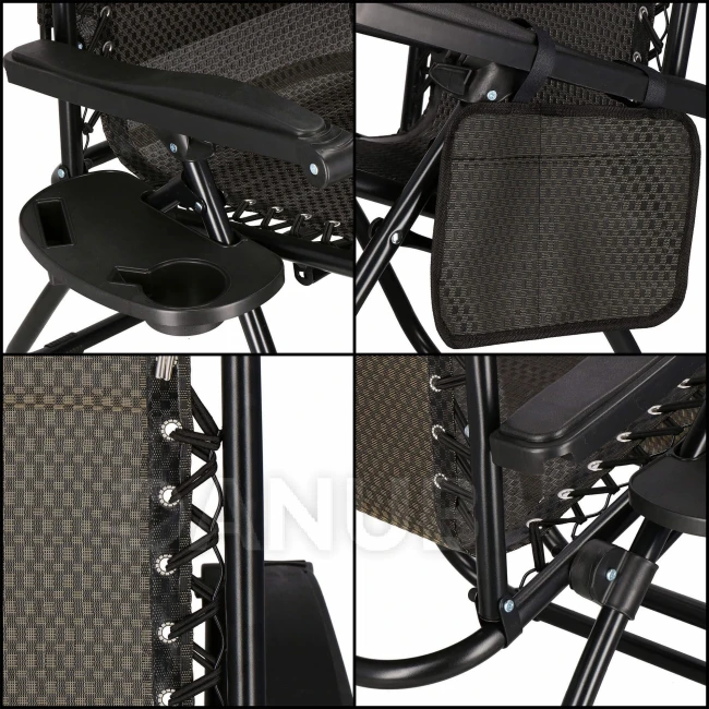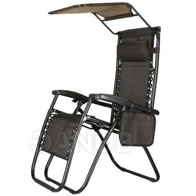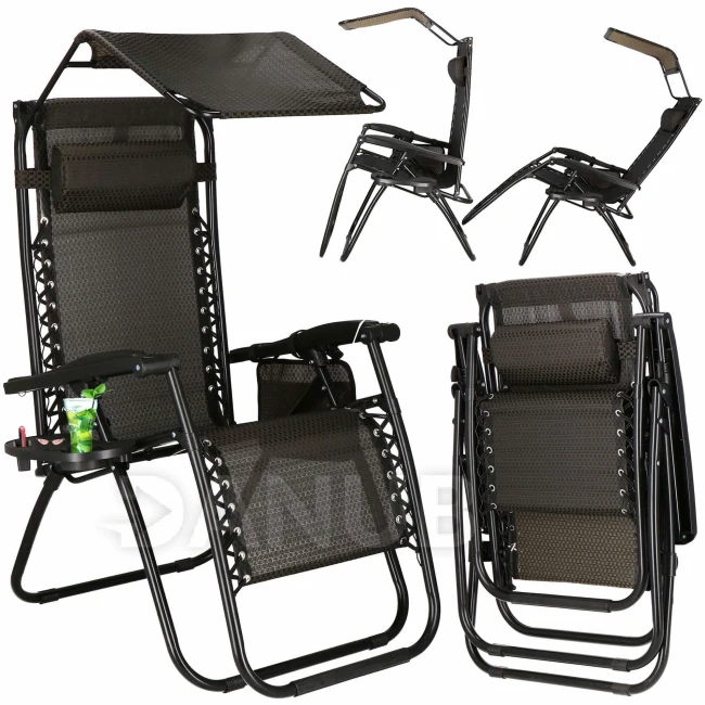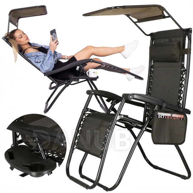 Skladacie záhradné kreslo s tienidlom - hnedá/čierna/béžová