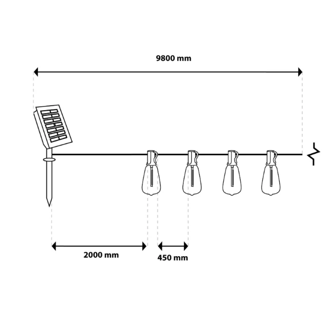 - 1x solárna girlanda LED40 + 2 ďalšie žiarovky