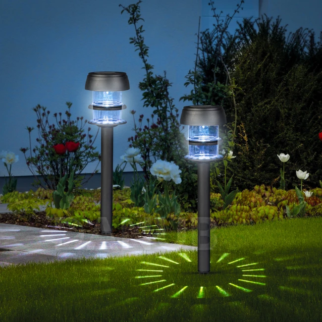 Ozvláštnite svoju záhradu LED solárnymi svetlami.Vďaka špeciálnemu dizajnu tienidla sa svetlo láme, čím osvetľuje vaše okolie a vytvára tak vo vašej záhrade magickú atmosféru.Môžete ju použiť aj ako smerové svetlo alebo dekoráciu v exteriéri.Pomocou zapichovacieho tŕňa ju rýchlo a jednoducho umiestnite.Hneď ako sa zotmie, svetlo sa automaticky zapne a vypne pri východe slnka. Počas dňa solárne články premieňajú slnečnú energiu na elektrickú energiu a ukladajú ju do batérie.
