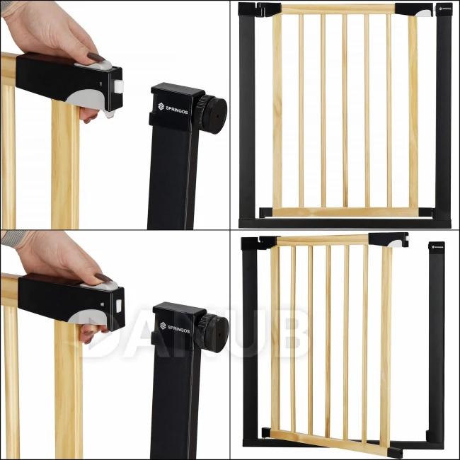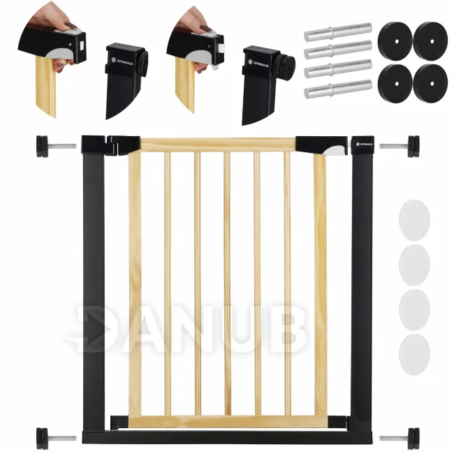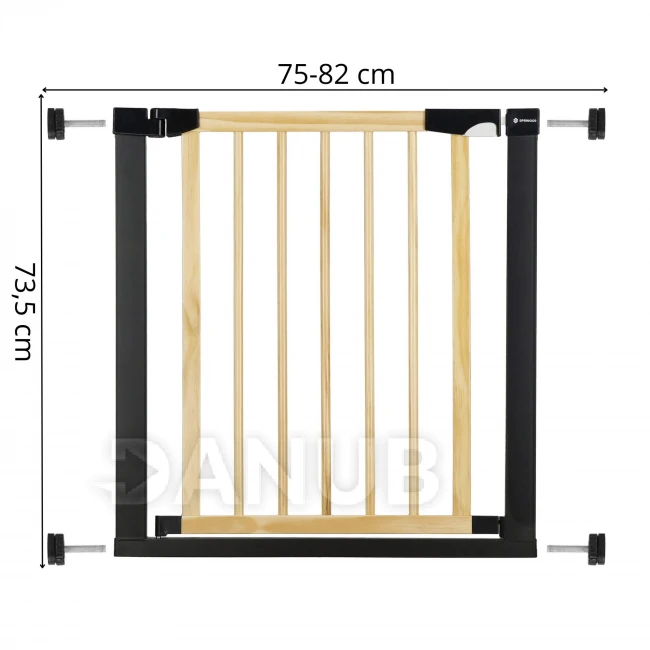 Bezpečnostná bariérová zabrána pre schody a dvere - čierna/drevo - 75-82 cm