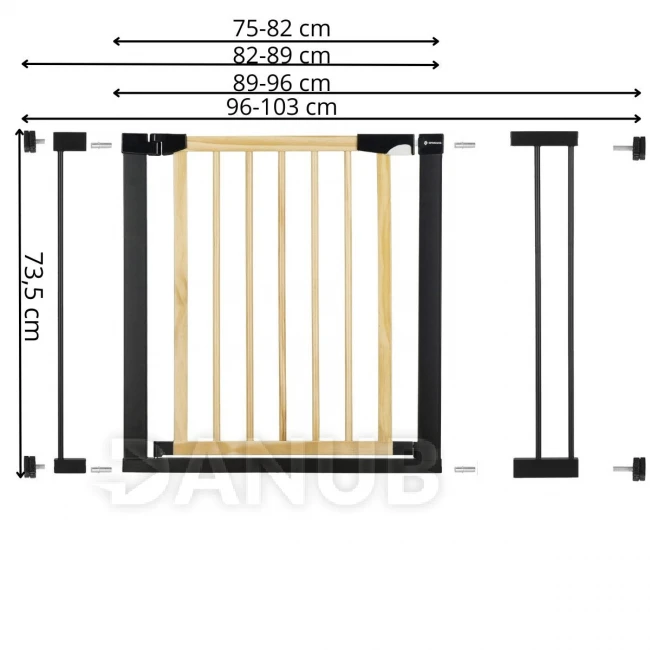 Bezpečnostná bariérová zabrána pre schody a dvere - čierna/hnedá - 75-103 cm