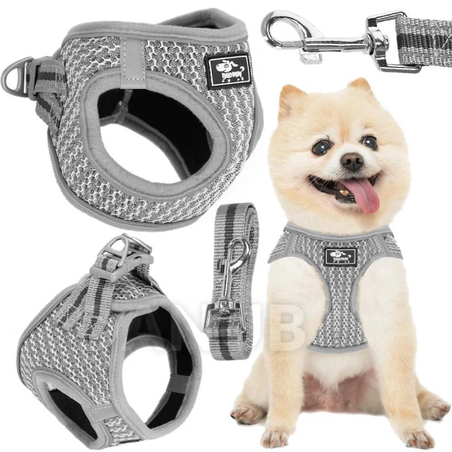 Beztlakový postroj pre psov, mačky L do 14-20 kg + vodítko 150 cm šedé