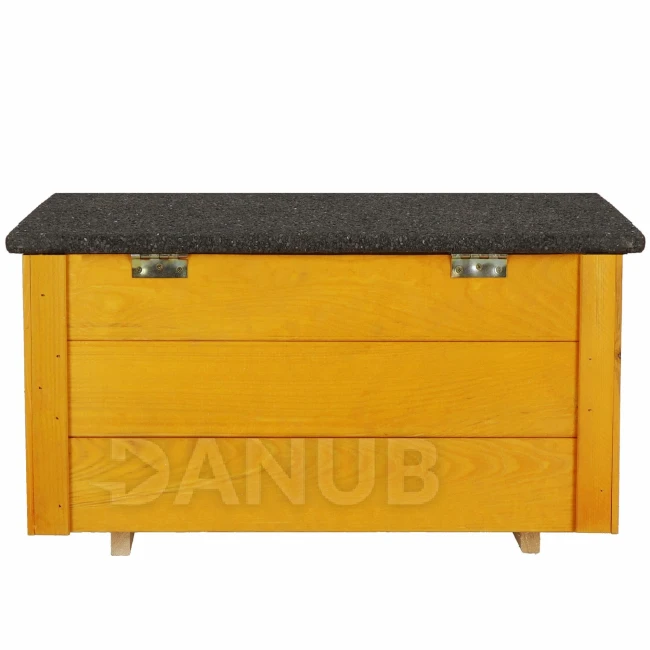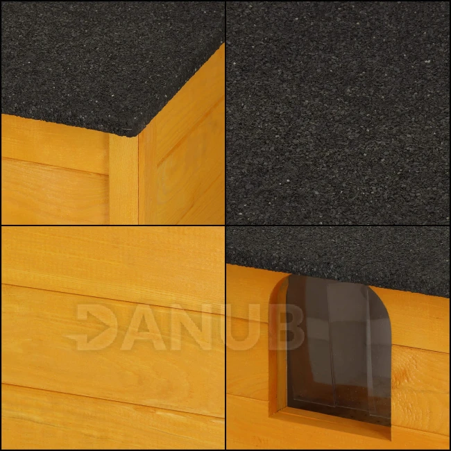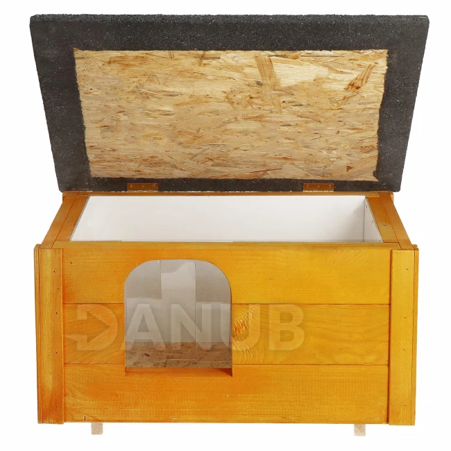 - Domček stojí na 2 drevených nohách, vďaka čomu si dlhšie udrží vhodnú teplotu.