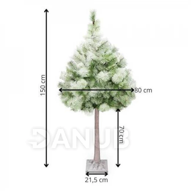 - Kmeň a konáre spolu s ihličnatými hrotmi napodobňujú prirodzený vzhľad ihličnatého stromu, pripomínajúceho borovicu; pokrytá umelým snehom