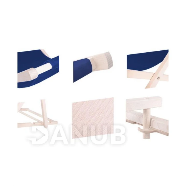 Drevené plážové lehátko je vyrobené zo silného bukového dreva a z kvalitného materiálu operadla. Ideálne na dovolenku pri odpočinku pri vode alebo na záhrade. Lehátko priamo od výrobcu! Vhodné pre verejné použitie.