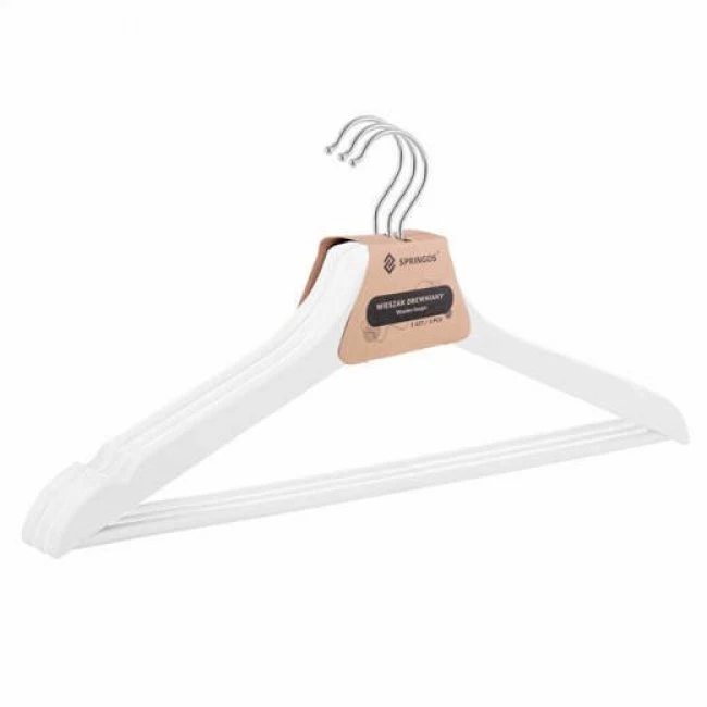 SPRINGOS Drevené vešiaky na šaty - 3 ks - biele