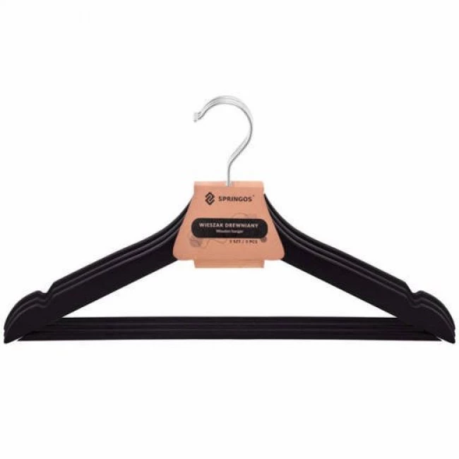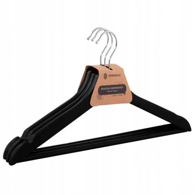 SPRINGOS Drevené vešiaky na šaty - 3 ks - čierne