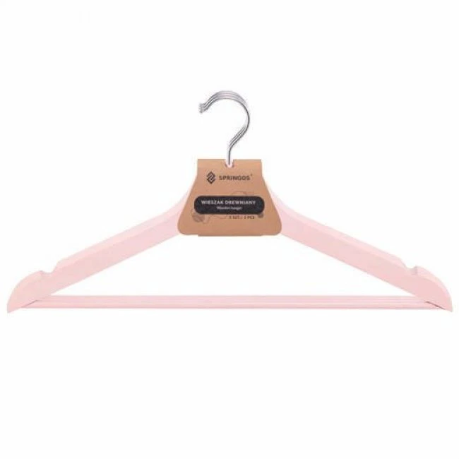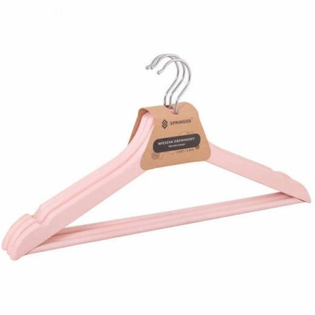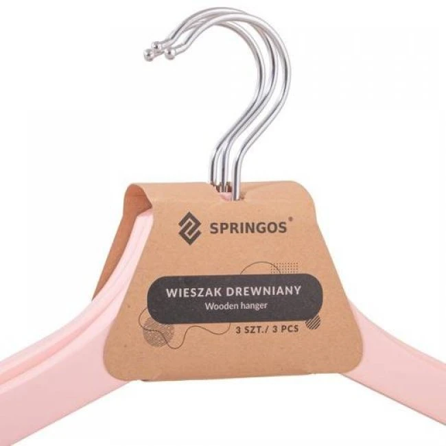 SPRINGOS Drevené vešiaky na šaty - 3 ks - ružové