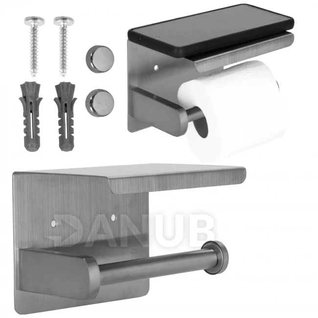 Držiak na toaletný papier s policou - strieborná